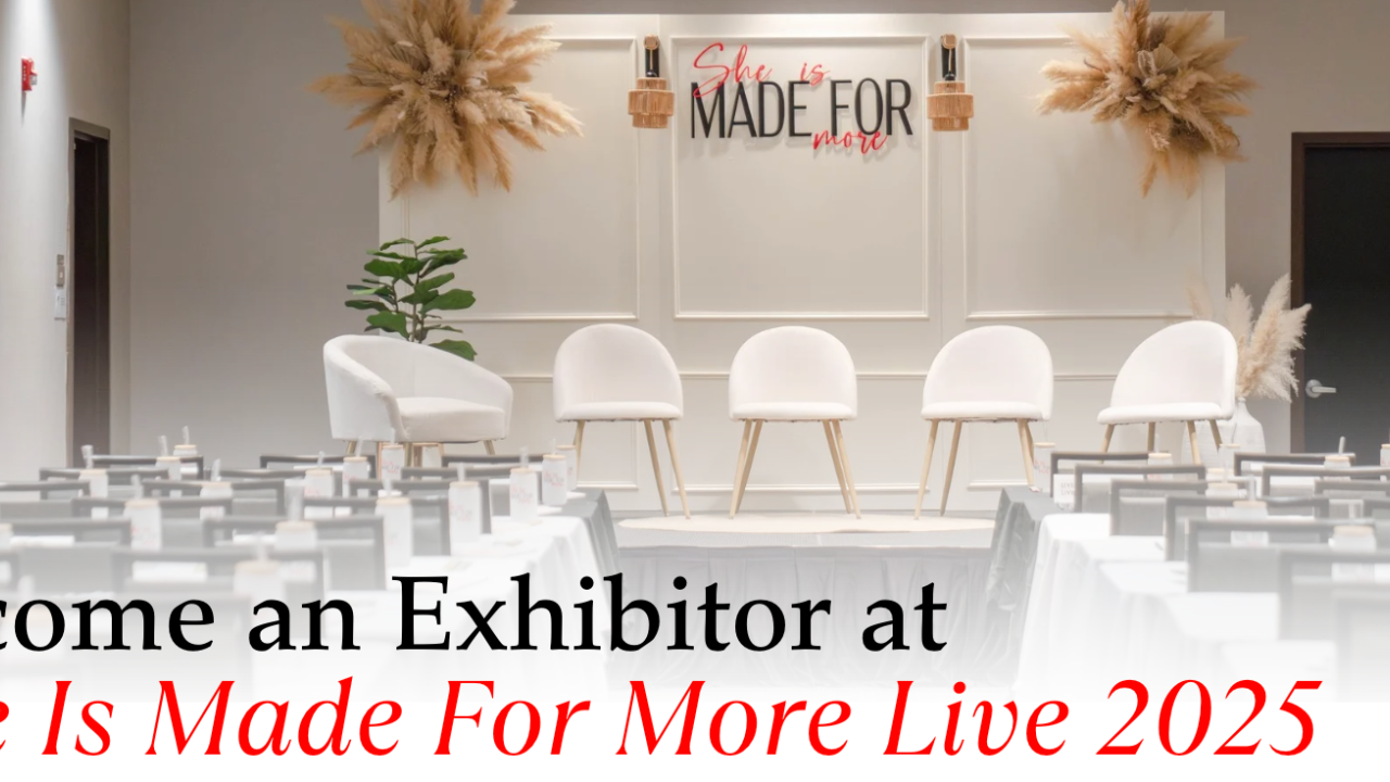 You’ve been invited to become an exhibitor at She Is Made For More Live 2025 a powerful, sold-out conference bringing together high-impact women entrepreneurs from across the country.